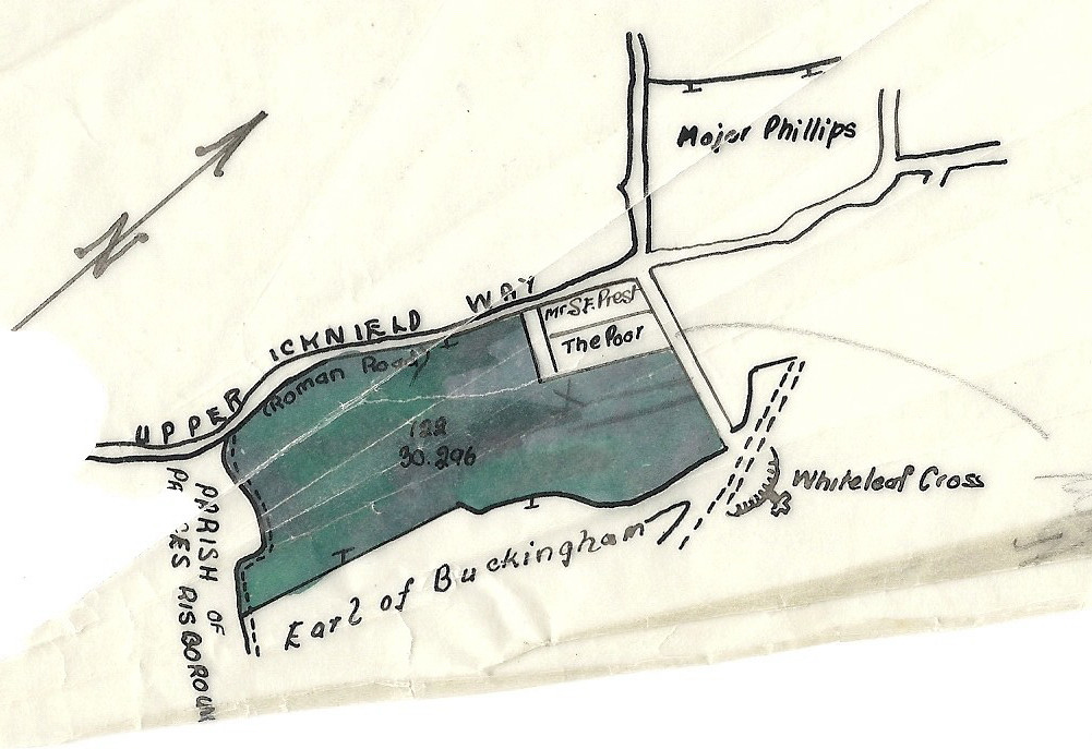 F. G. Parsons, in part 1 of his “Old Records of Monks Risborough”, examines in great detail the parish boundary and questions exactly where the original boundary was. He argues that it ran along Upper Icknield Way from the Cadsden road and then followed the old road behind Whiteleaf House, referred to above (which Parsons argues is the King’s Street referred to in the Charter). Part 1, Part2 and Part 3 of Parsons’ texts are available on this site. To access them click on the appropriate part.