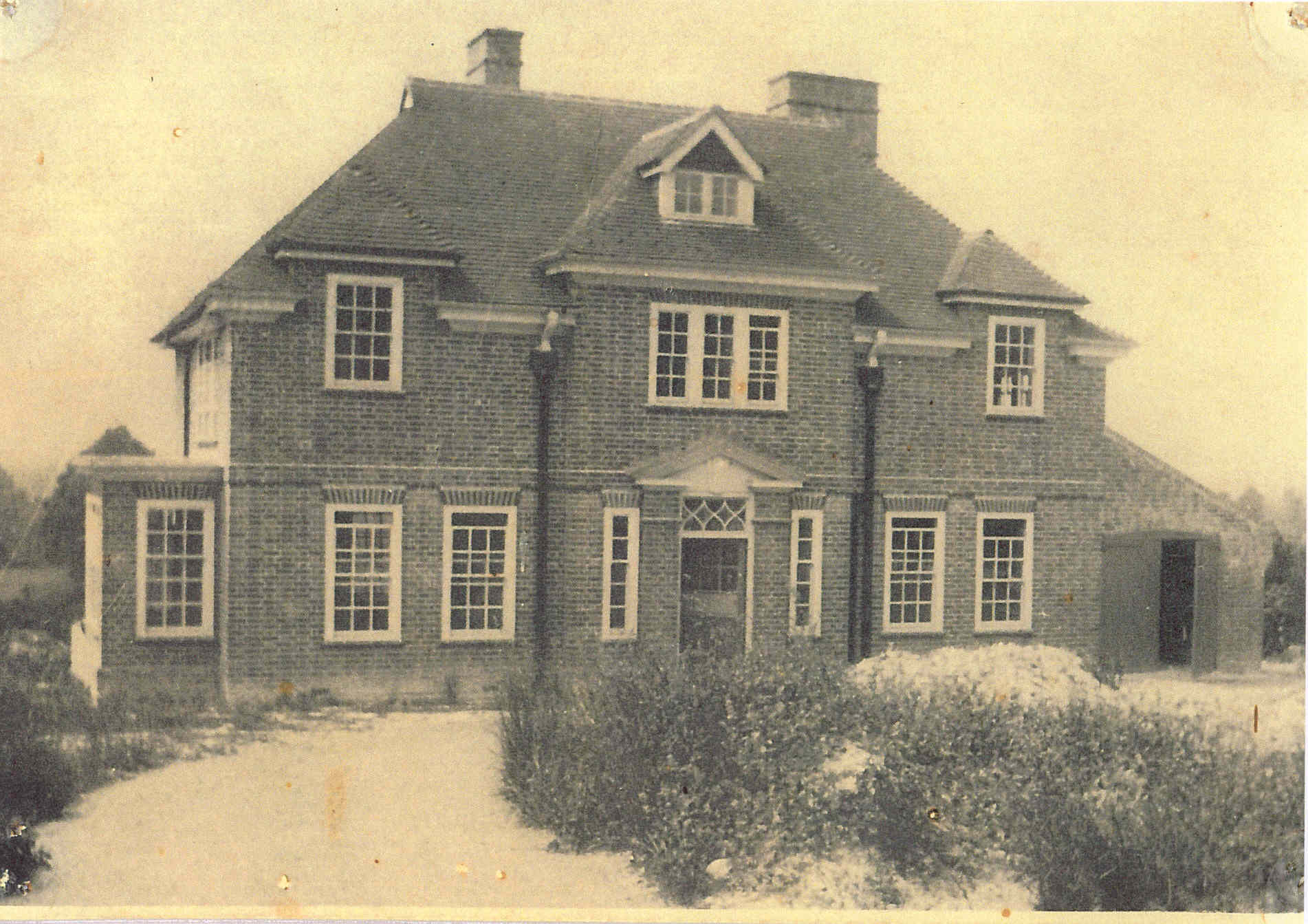 It is understood that the property was built in 1928 by a Mr. Thomas Gerard Davidson, an architect, as his own house. The same architect designed Brambledown, which has some similar characteristics. A single storey extension (a playroom) was added a few years before 1968, built it is believed, by Cliff Lipyeart, (see under The New House).